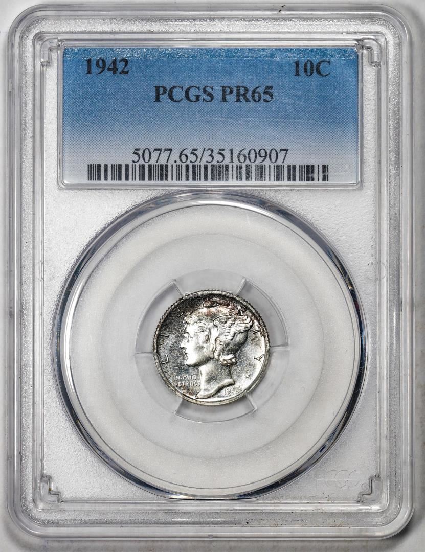 One 1942 Proof Mercury Dime Coin PCGS PR65. PCGS Graded.