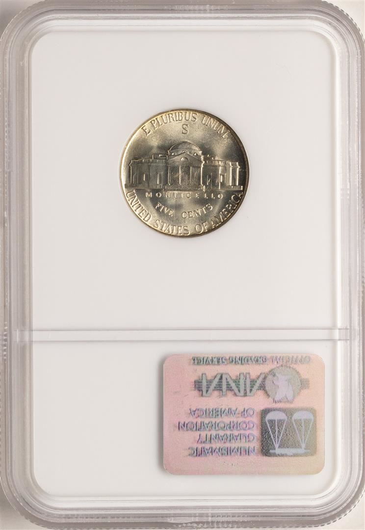 One 1942-S Jefferson Nickel Coin NGC MS67. NGC Certified.