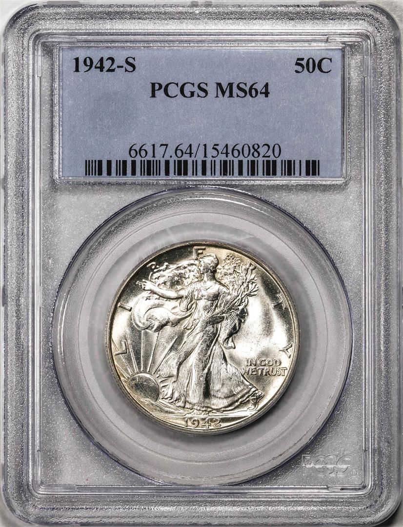 One 1942-S Walking Liberty Half Dollar Coin PCGS MS64. PCGS Graded.