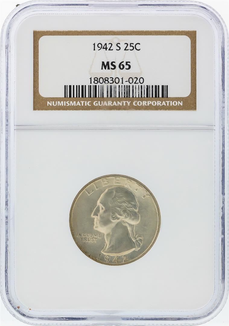 One 1942-S Washington Quarter NGC Graded MS65. NGC Certified.