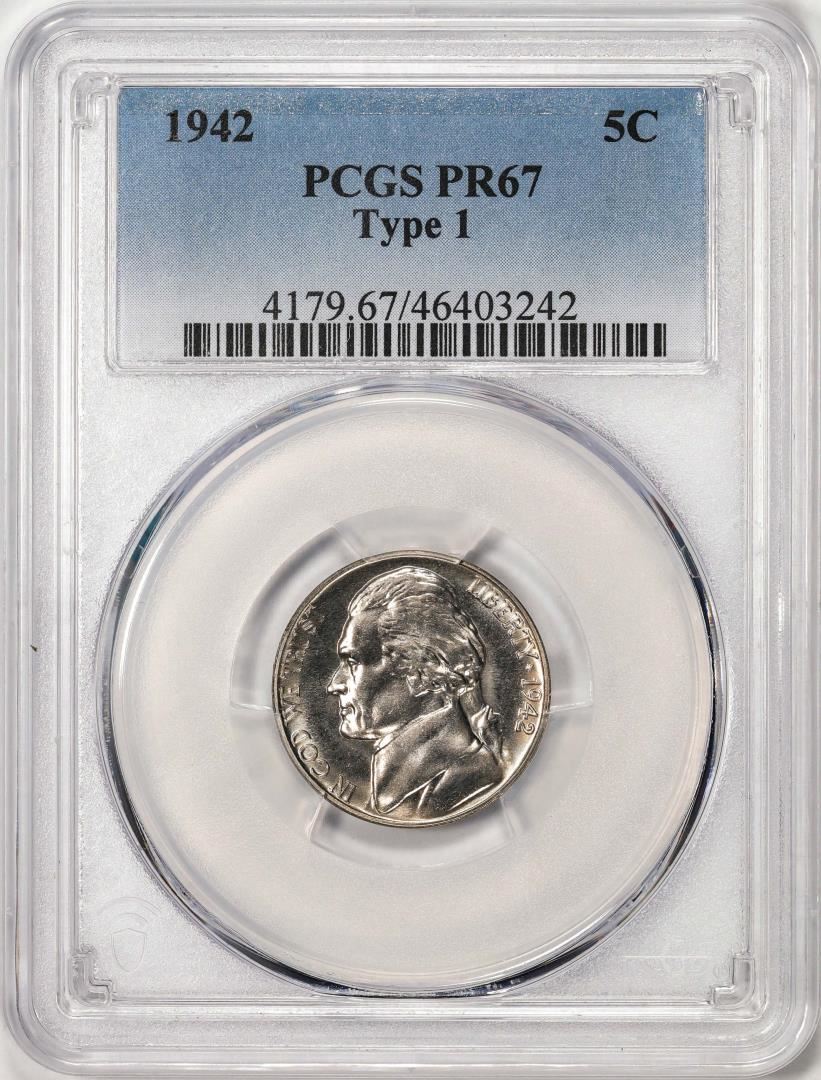 One 1942 Type 1 Proof Jefferson Nickel Coin PCGS PR67. PCGS Graded.