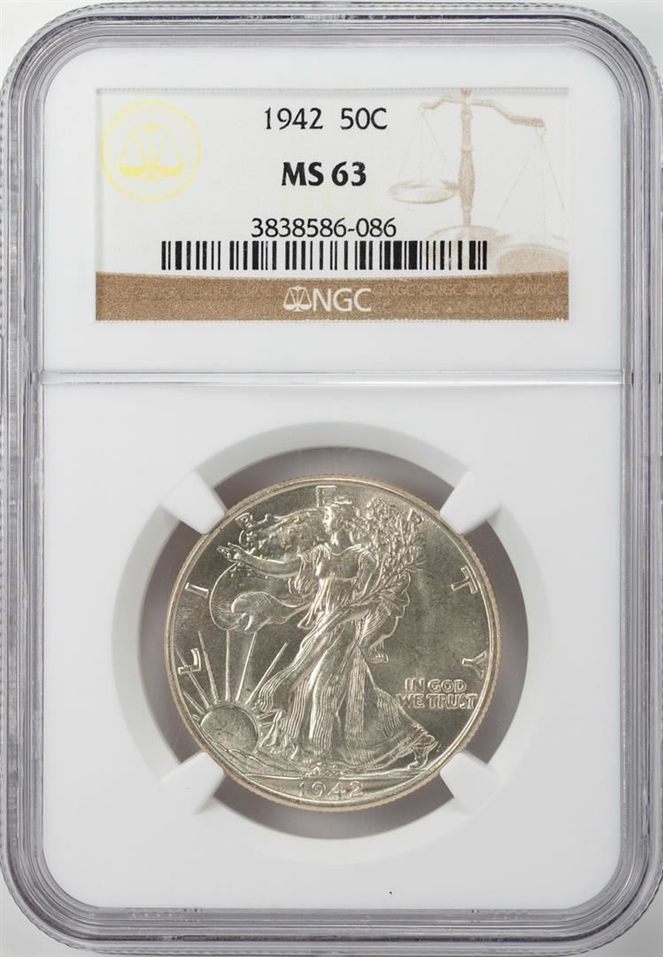 One 1942 Walking Liberty Half Dollar Coin NGC MS63. NGC Certified.