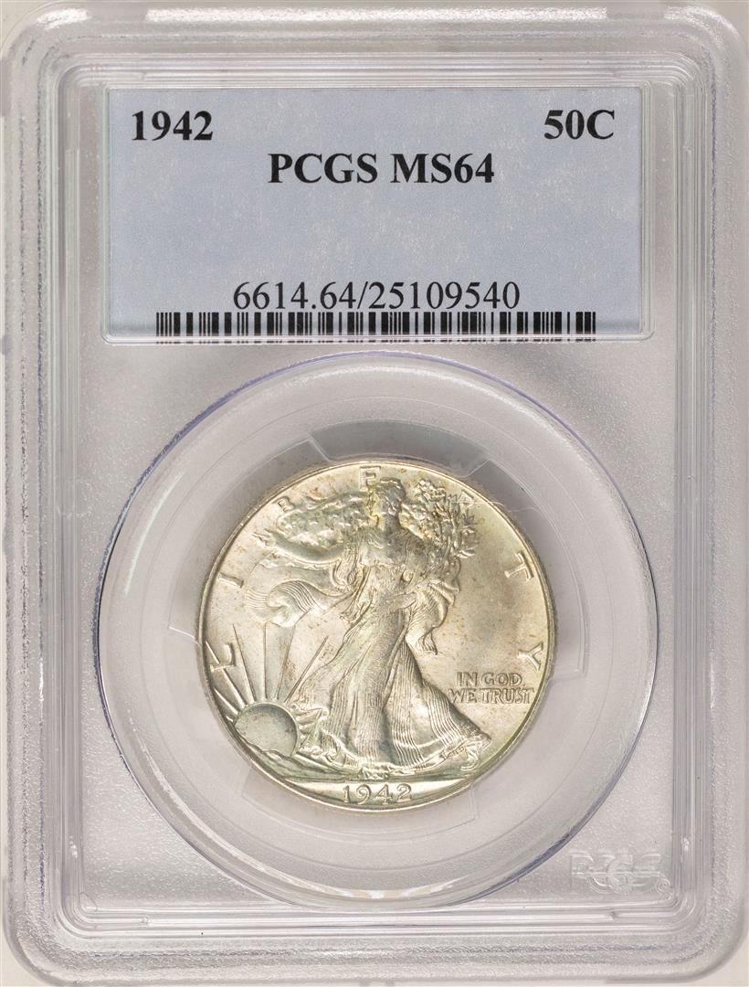 One 1942 Walking Liberty Half Dollar Coin PCGS MS64. PCGS Graded.