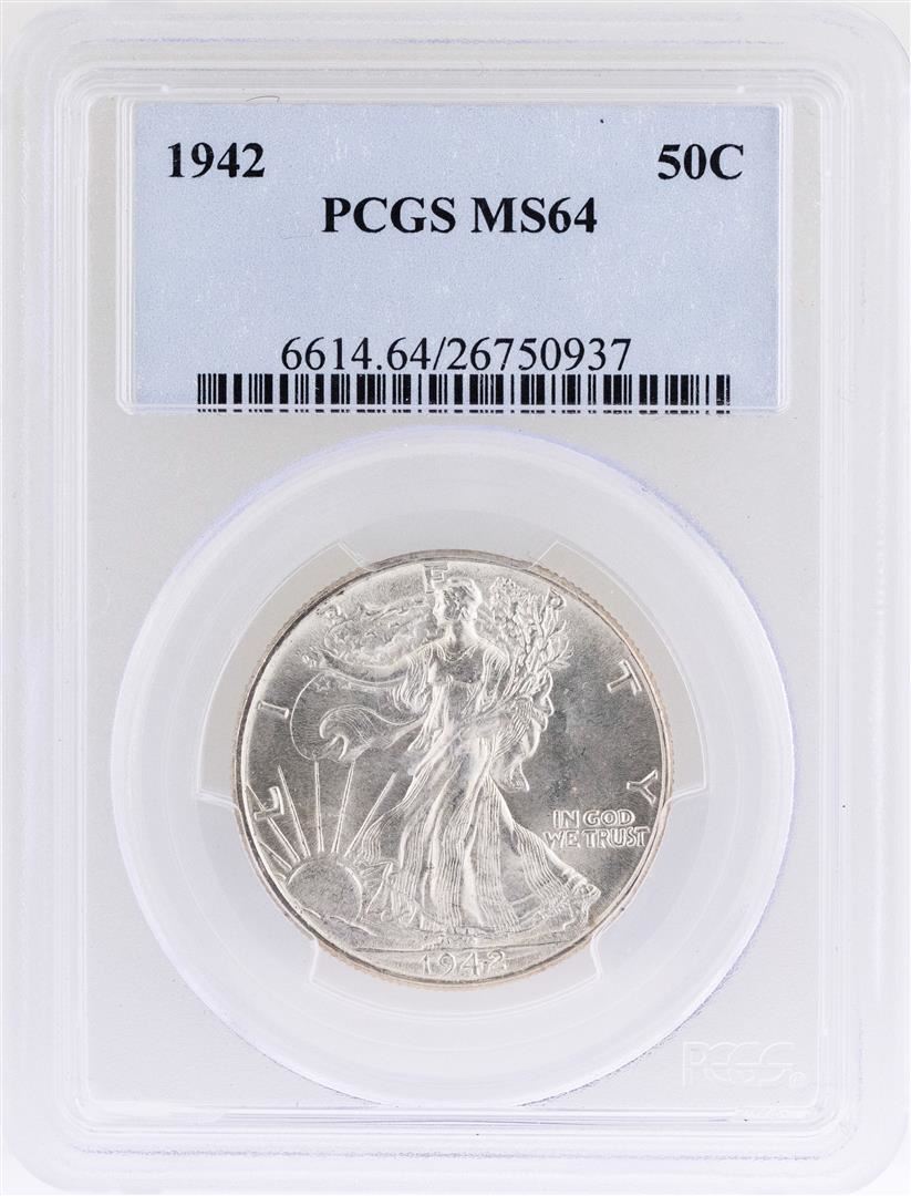 One 1942 Walking Liberty Half Dollar Coin PCGS MS64. PCGS Graded.