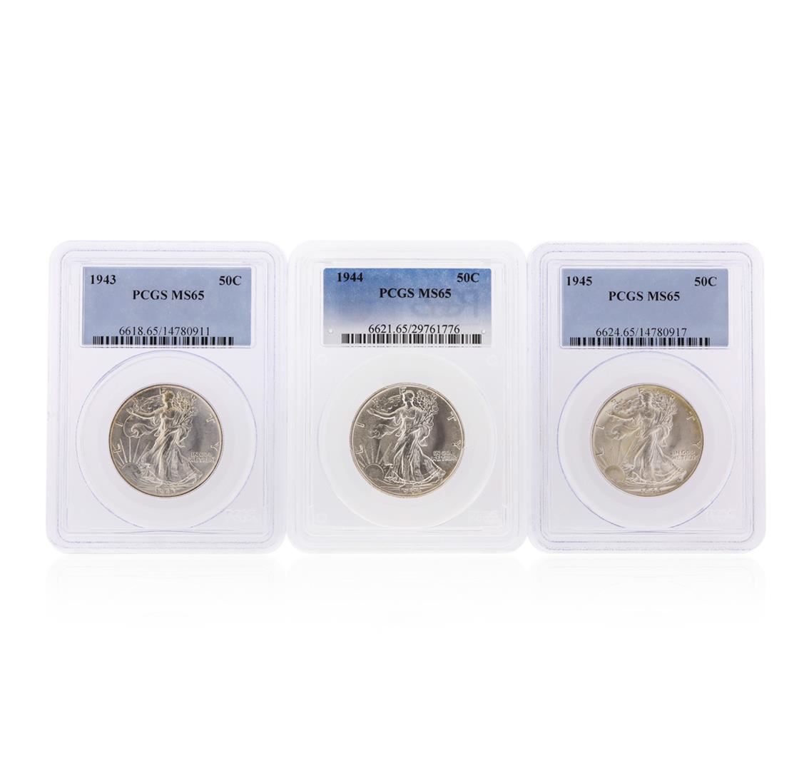 1943-1945 Walking Liberty Half Dollar Coins PCGS Graded MS65