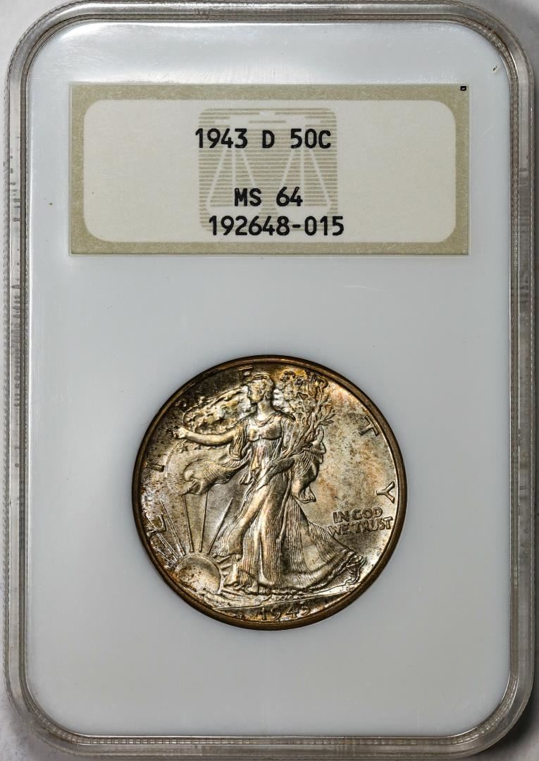 1943-D Walking Liberty Half Dollar Coin NGC MS64 Old Fatty Holder Nice Toning