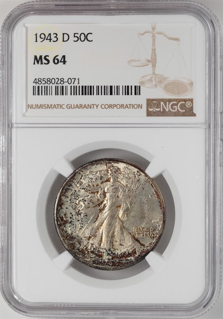 One 1943-D Walking Liberty Half Dollar Coin NGC MS64. NGC Certified.
