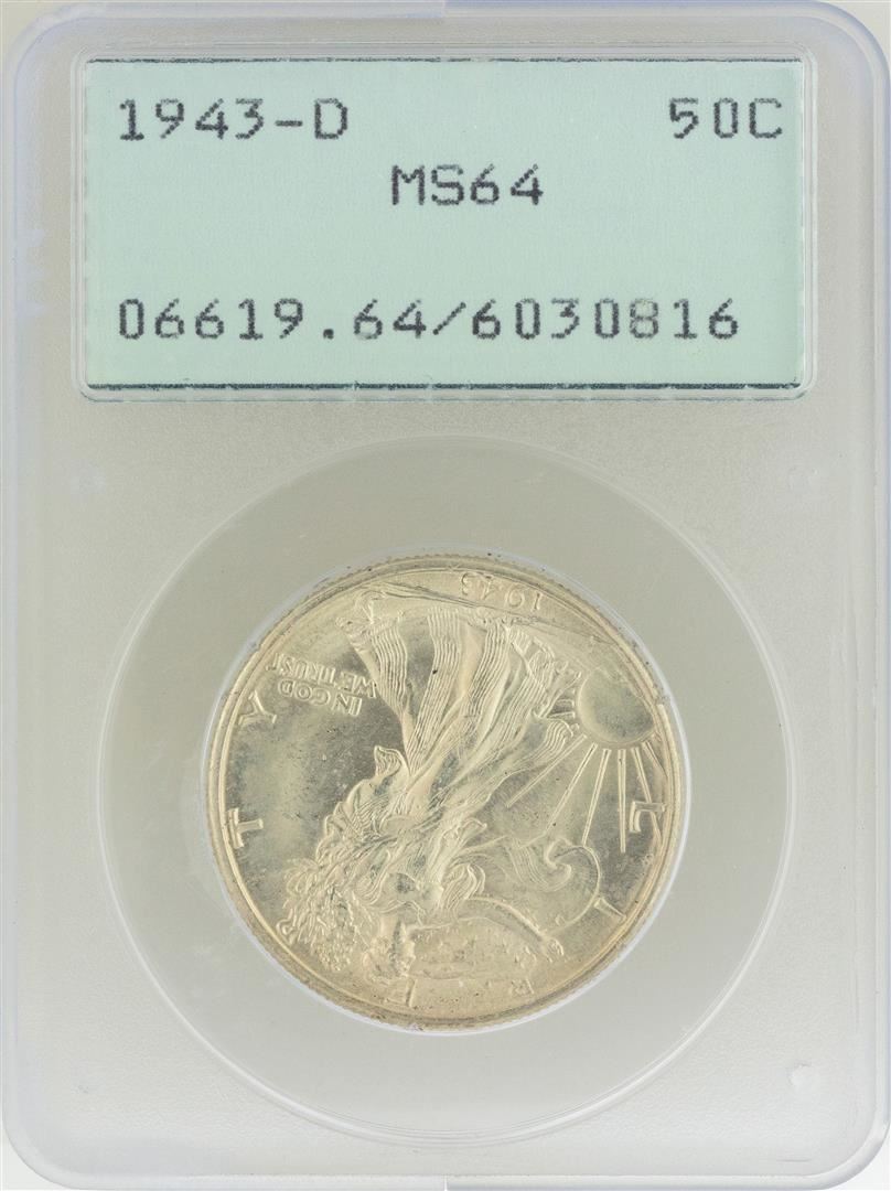 1943-D Walking Liberty Half Dollar Coin PCGS MS64 Old Green Rattler