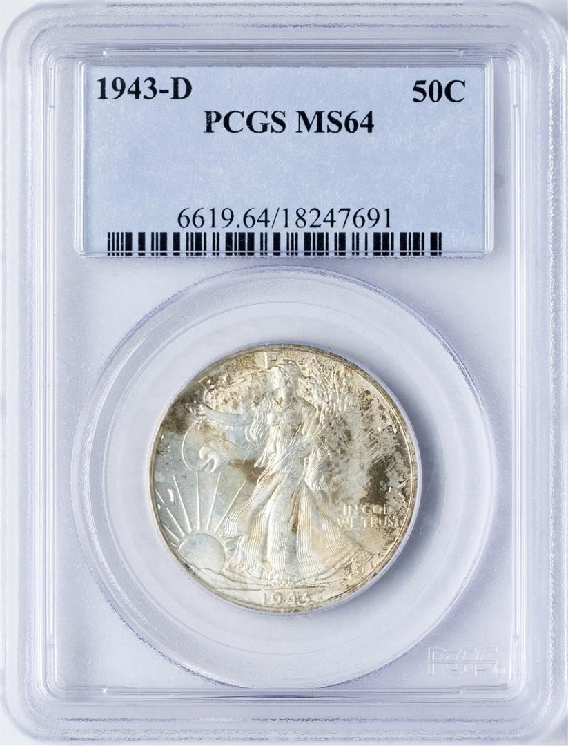 One 1943-D Walking Liberty Half Dollar Coin PCGS MS64. PCGS Graded.