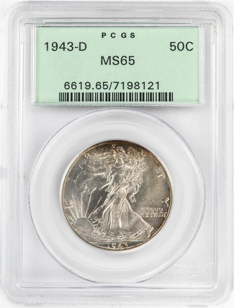 1943-D Walking Liberty Half Dollar Coin PCGS MS65 Old Green Holder