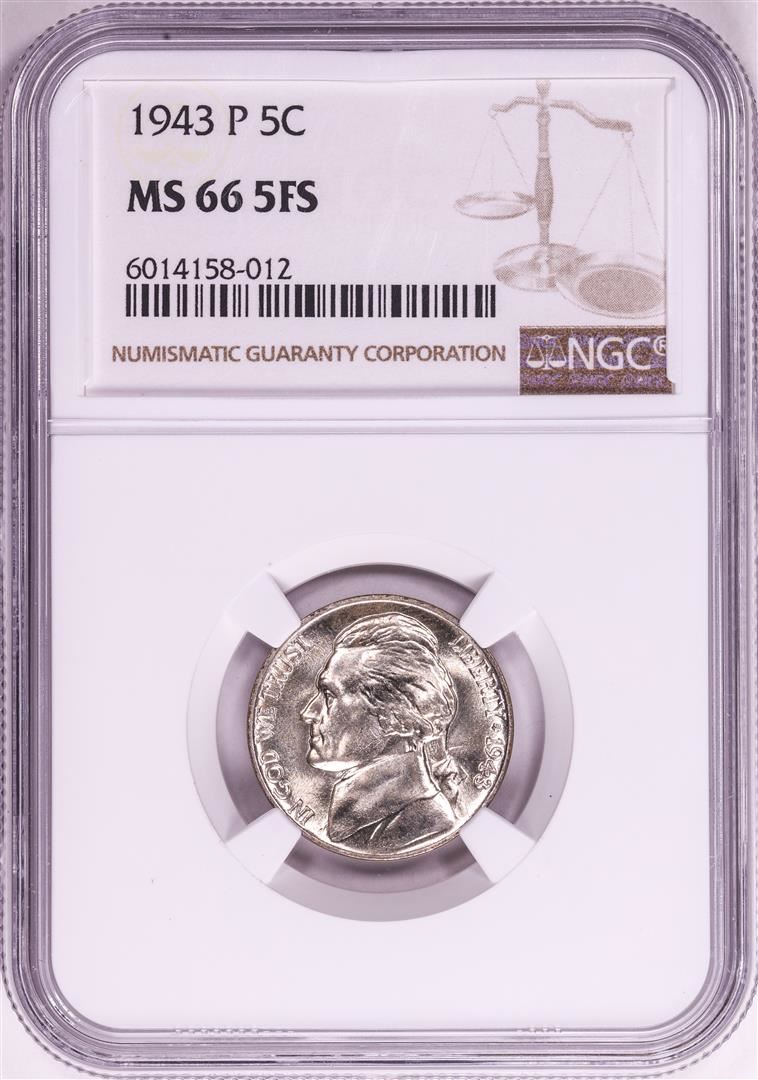 One 1943-P Jefferson Nickel Coin NGC MS66 5FS. NGC Certified.