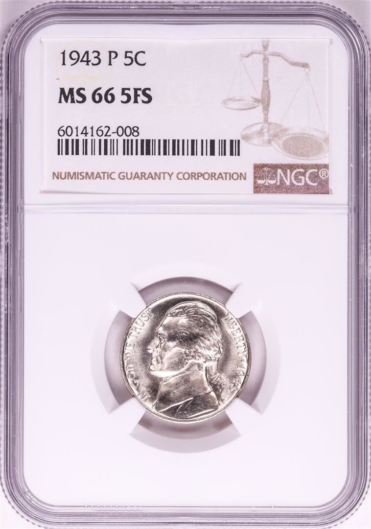 One 1943-P Jefferson Nickel Coin NGC MS66 5FS. NGC Certified.