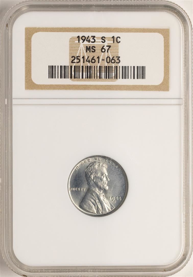 One 1943-S Lincoln Steel Cent Coin NGC MS67. NGC Certified.