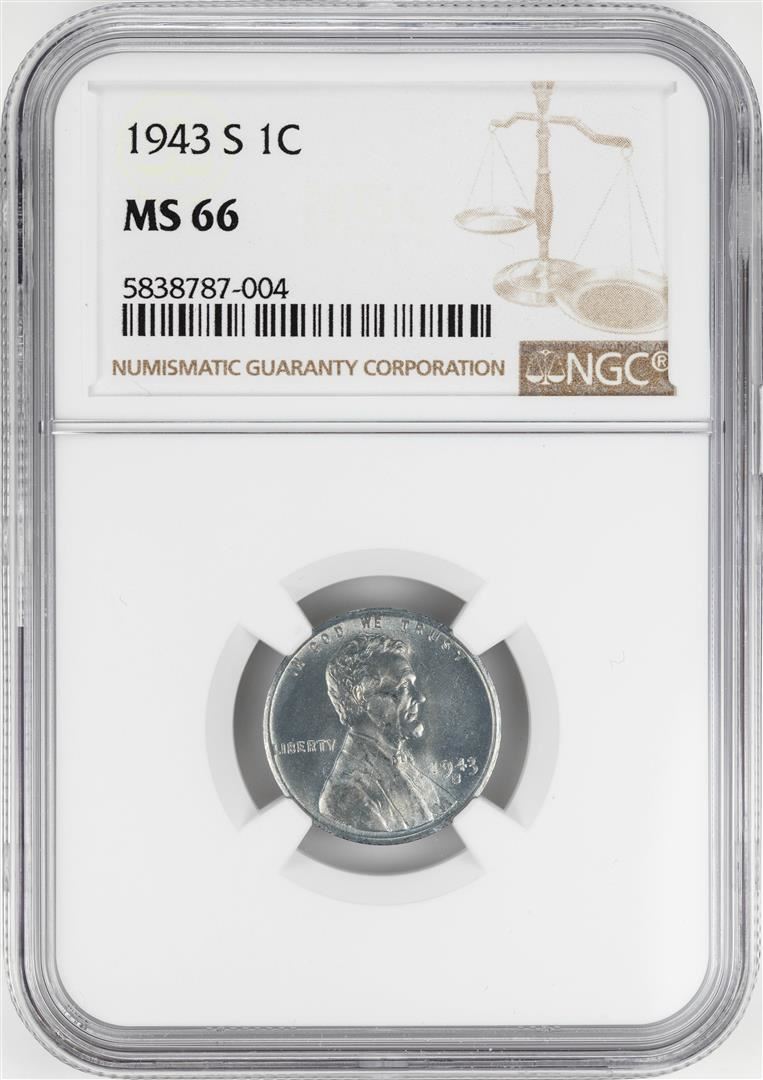 One 1943-S Steel Lincoln Wheat Cent Coin NGC MS66. NGC Certified.