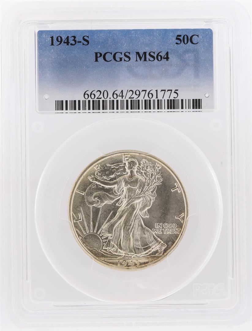 One 1943-S Walking Liberty Half Dollar Coin PCGS Graded MS64. PCGS Graded.