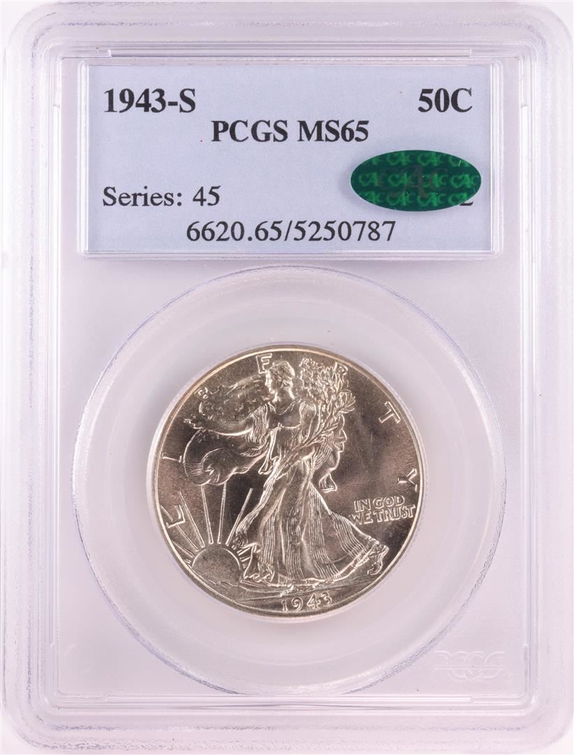 One 1943-S Walking Liberty Half Dollar Coin PCGS MS65 CAC. PCGS Graded.