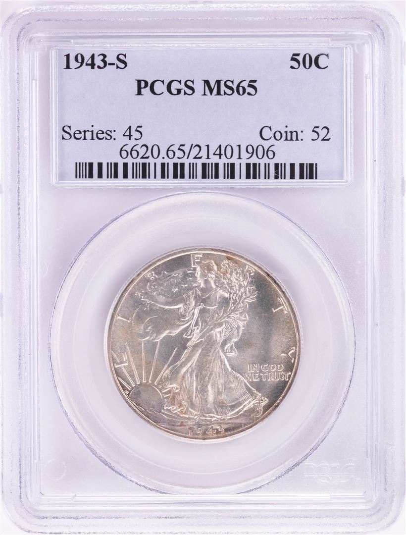 One 1943-S Walking Liberty Half Dollar Coin PCGS MS65. PCGS Graded.