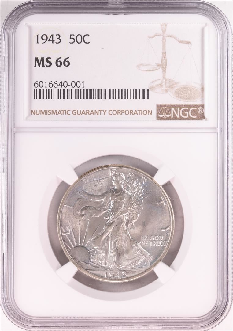 One 1943 Walking Liberty Half Dollar Coin NGC MS66. NGC Certified.
