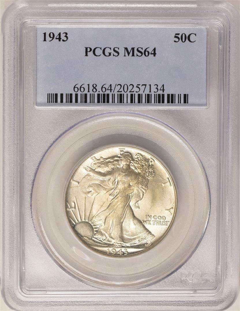 One 1943 Walking Liberty Half Dollar Coin PCGS MS64. PCGS Graded.