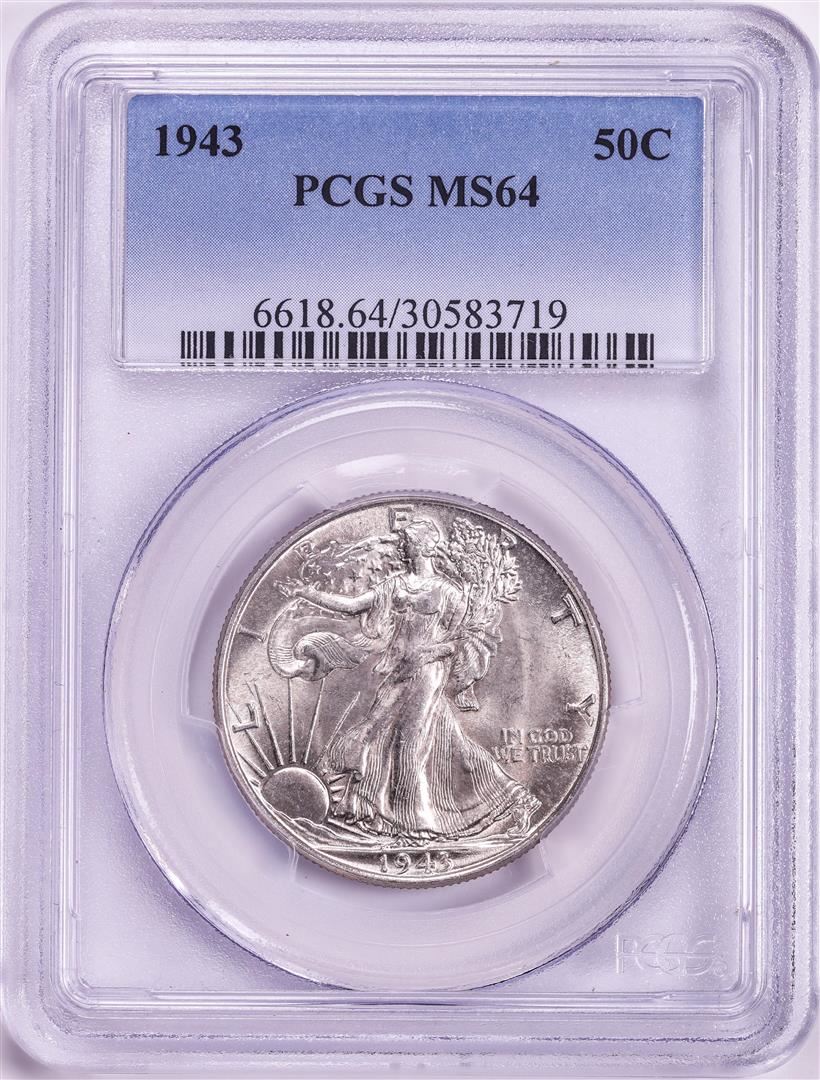 One 1943 Walking Liberty Half Dollar Coin PCGS MS64. PCGS Graded.