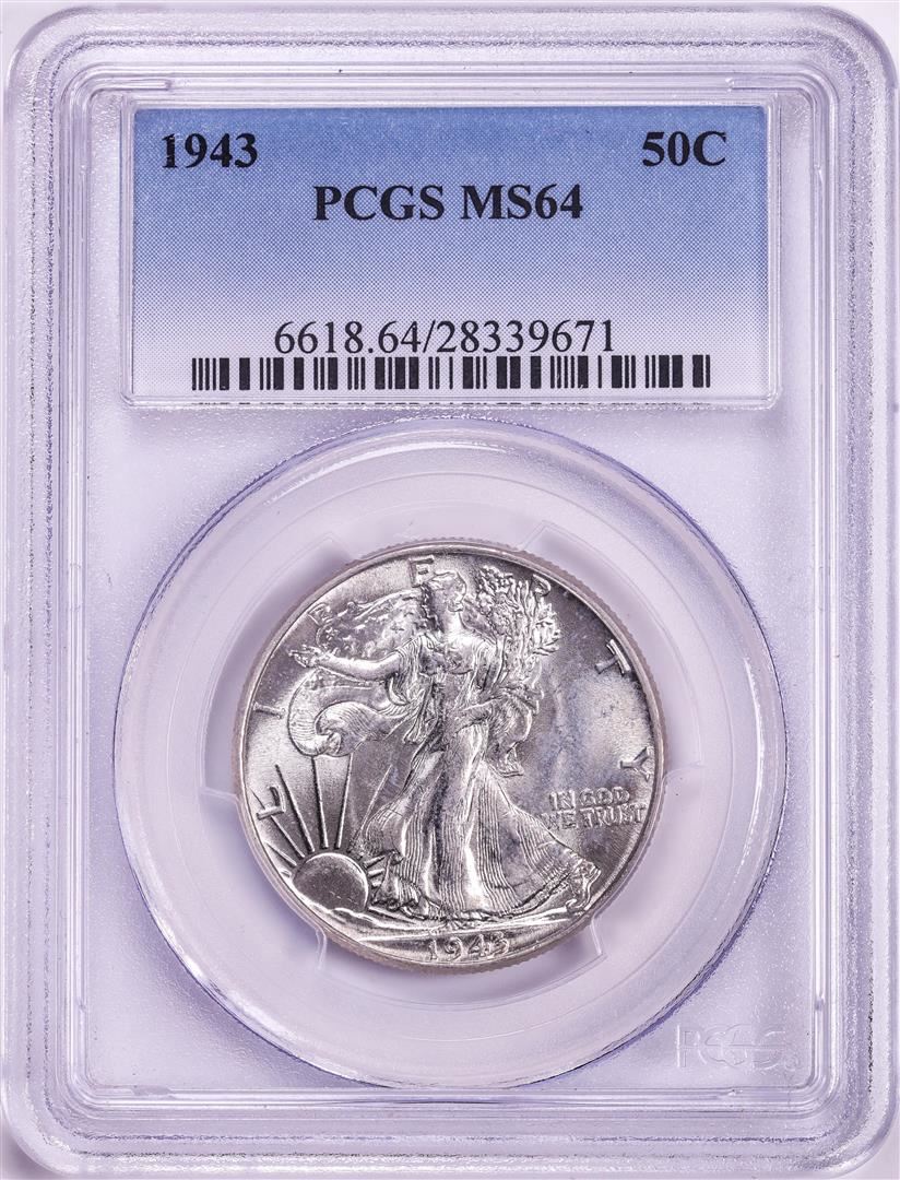 One 1943 Walking Liberty Half Dollar Coin PCGS MS64. PCGS Graded.
