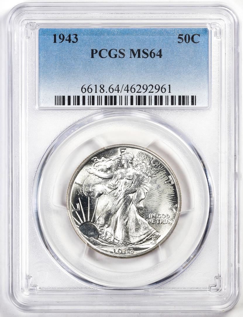 One 1943 Walking Liberty Half Dollar Coin PCGS MS64. PCGS Graded.