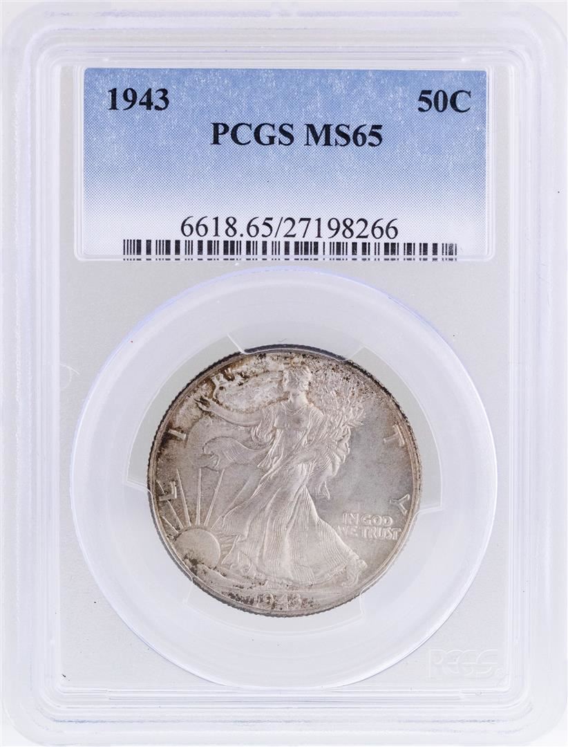 One 1943 Walking Liberty Half Dollar Coin PCGS MS65. PCGS Graded.