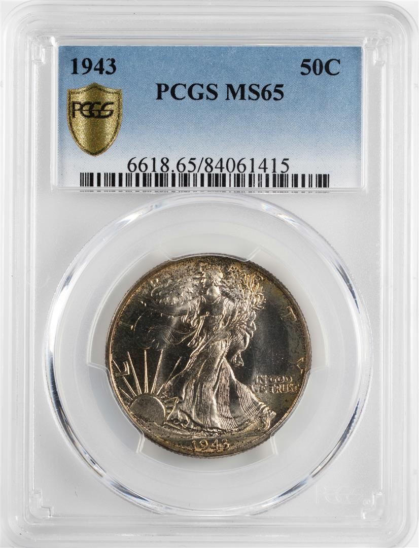One 1943 Walking Liberty Half Dollar Coin PCGS MS65. PCGS Graded.