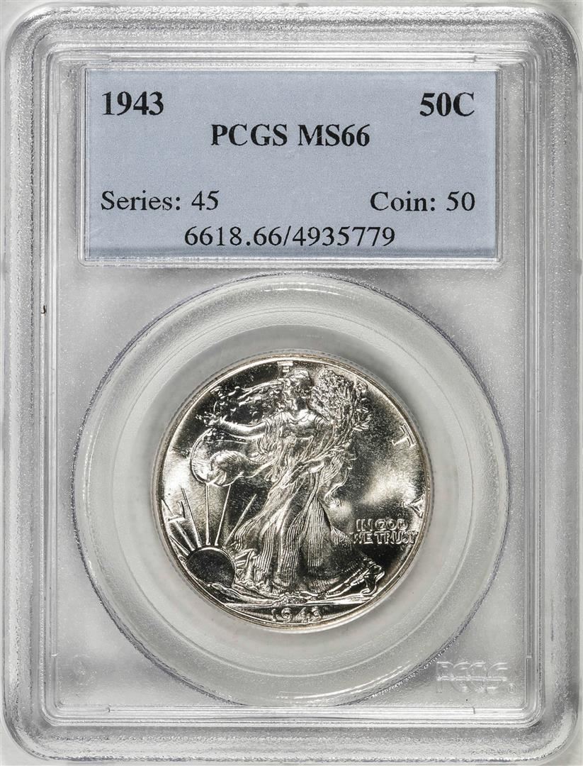 One 1943 Walking Liberty Half Dollar Coin PCGS MS66. PCGS Graded.