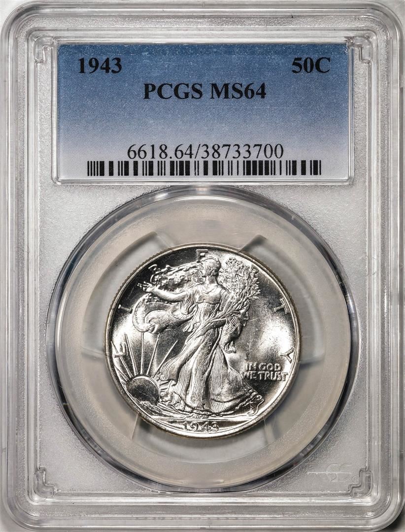 One 1943 Walking Liberty Half Dollar Coins PCGS MS64. PCGS Graded.