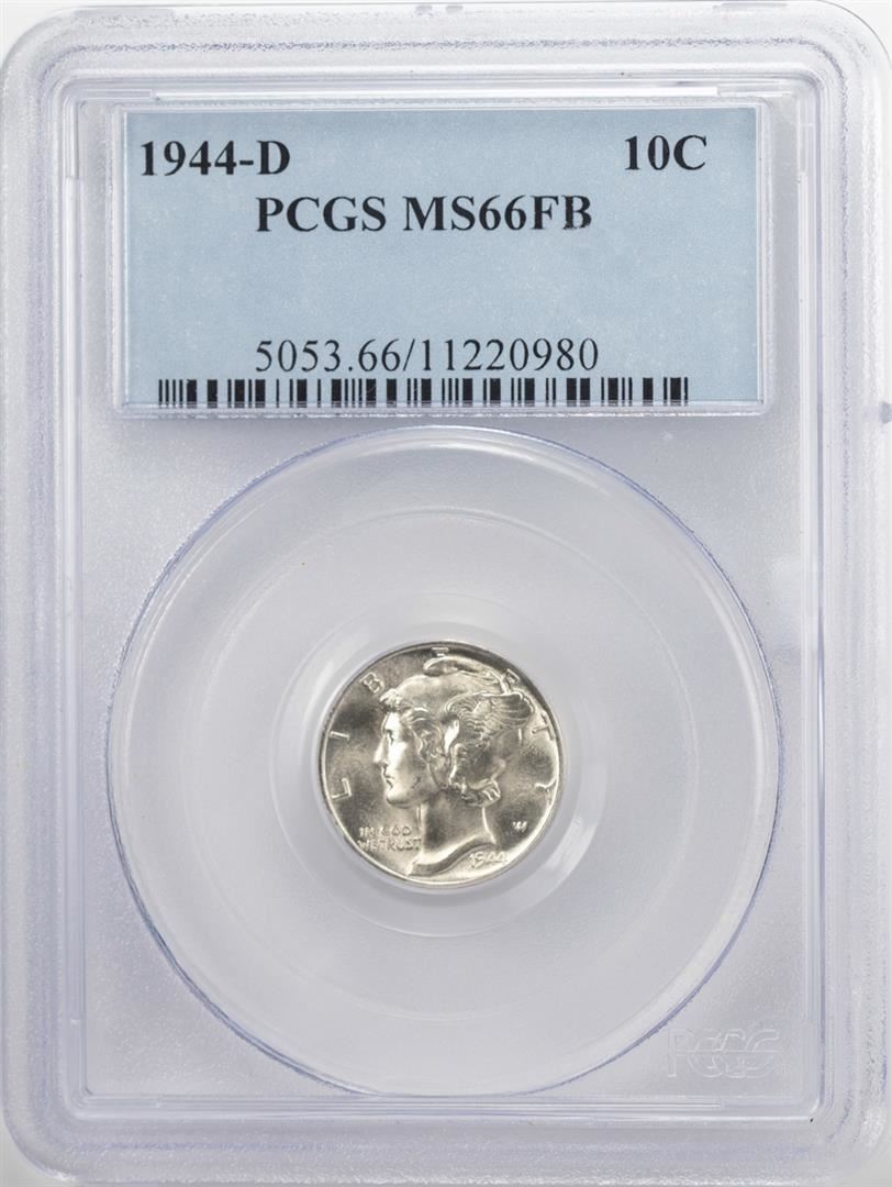 One 1944-D Mercury Dime Coin PCGS MS66FB. PCGS Graded.