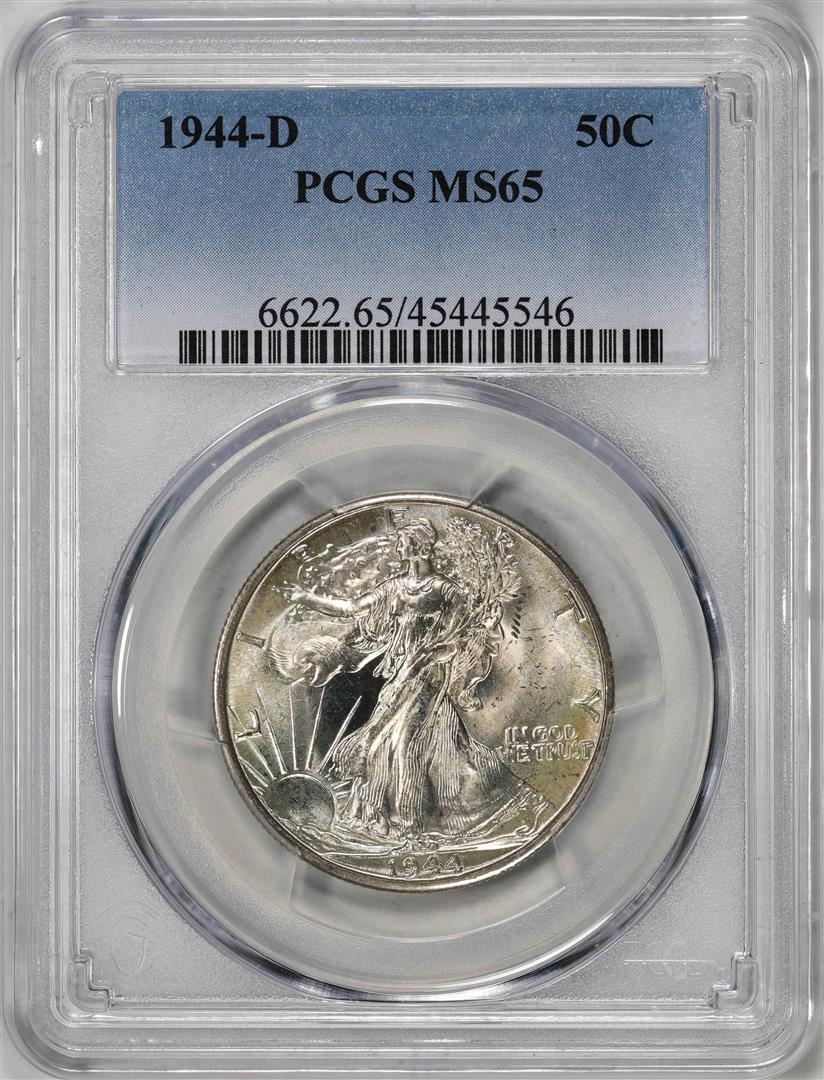 One 1944-D Walking Liberty Half Dollar Coin PCGS MS65. PCGS Graded.