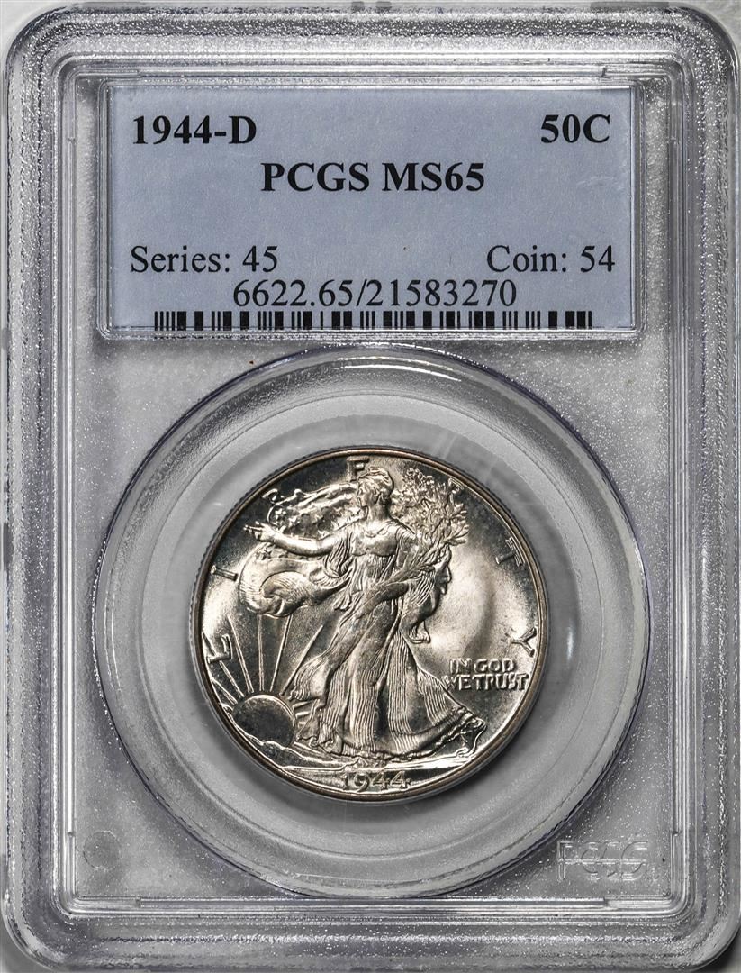 One 1944-D Walking Liberty Half Dollar Coin PCGS MS65. PCGS Graded.