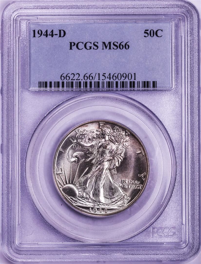 One 1944-D Walking Liberty Half Dollar Coin PCGS MS66. PCGS Graded.