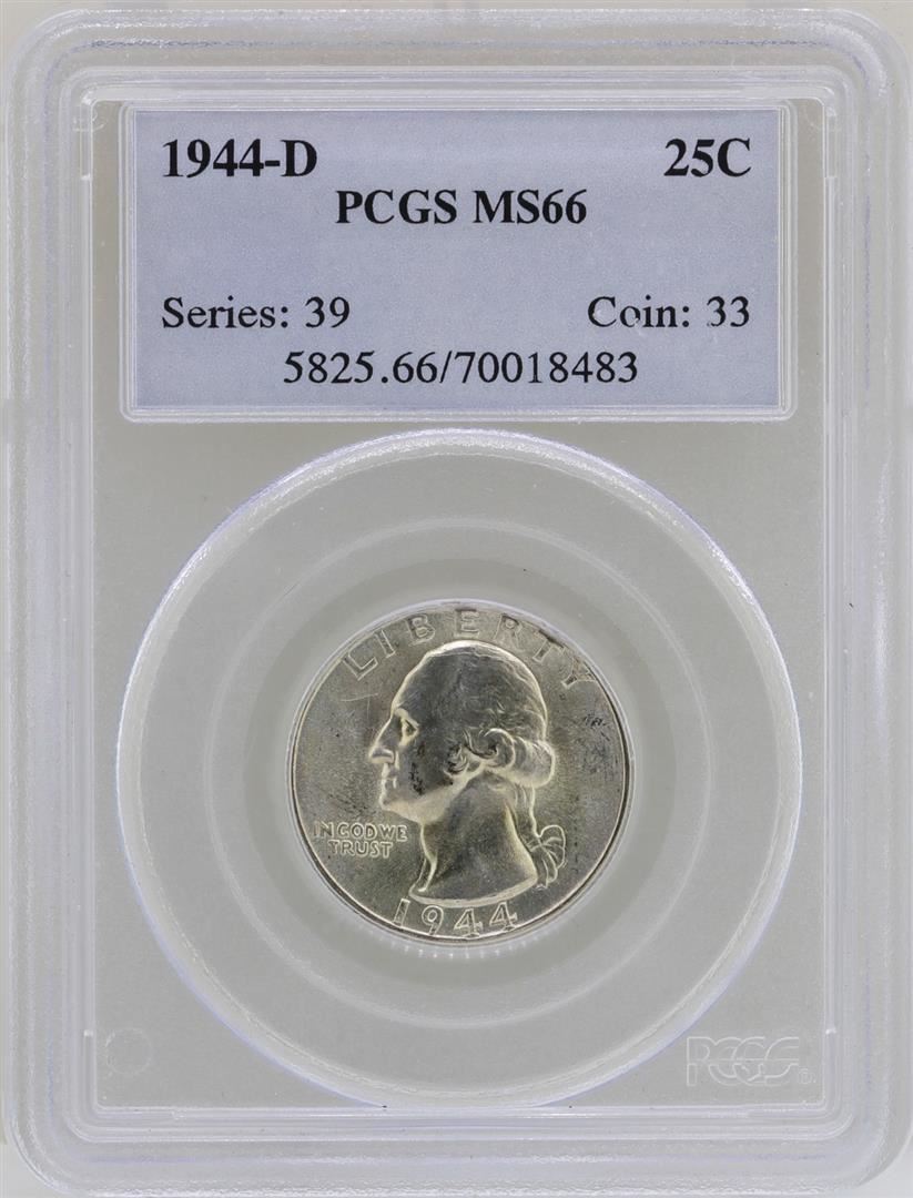 One 1944-D Washington Quarter Coin PCGS MS66. PCGS Graded.