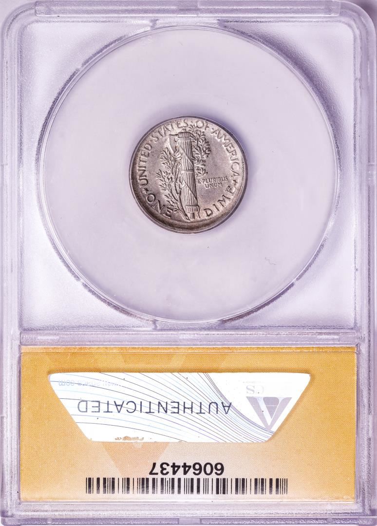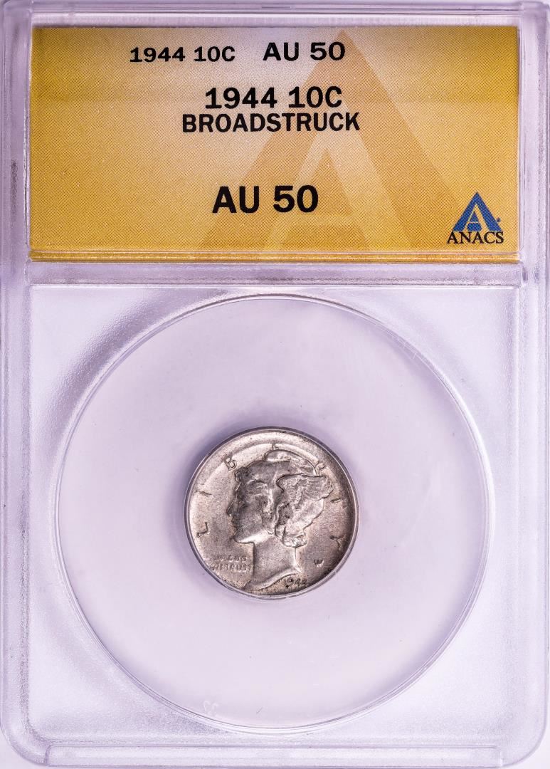 One 1944 Mercury Dime Coin Broadstruck Error ANACS AU50. ANACS Certified.