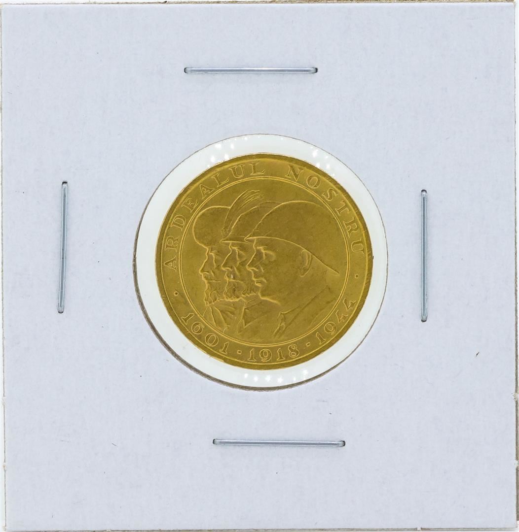 One 1944 Romania 20 Lei WWII Issue Gold Coin.