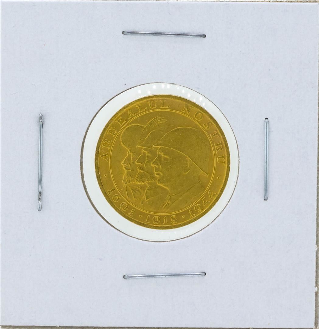 One 1944 Romania 20 Lei WWII Issue Gold Coin.