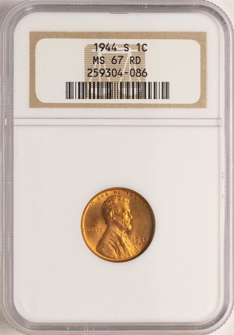 One 1944-S Lincoln Wheat Cent Coin NGC MS67RD. NGC Certified.