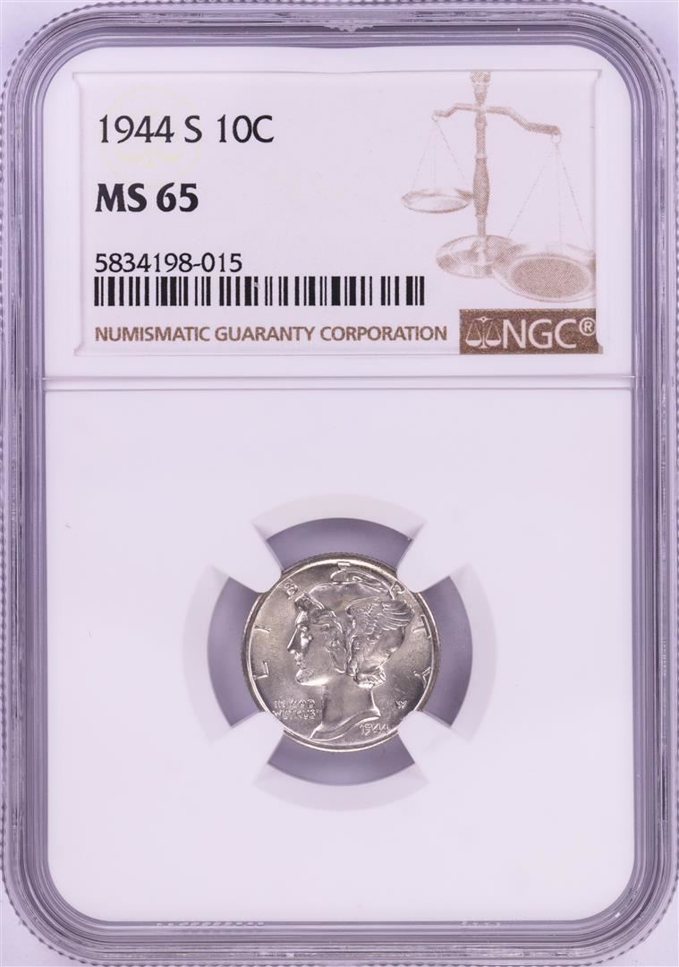 One 1944-S Mercury Dime Coin NGC MS65. NGC Certified.