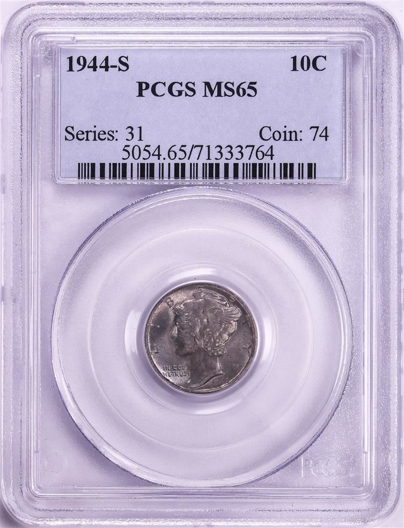 One 1944-S Mercury Dime Coin PCGS MS65. PCGS Graded.