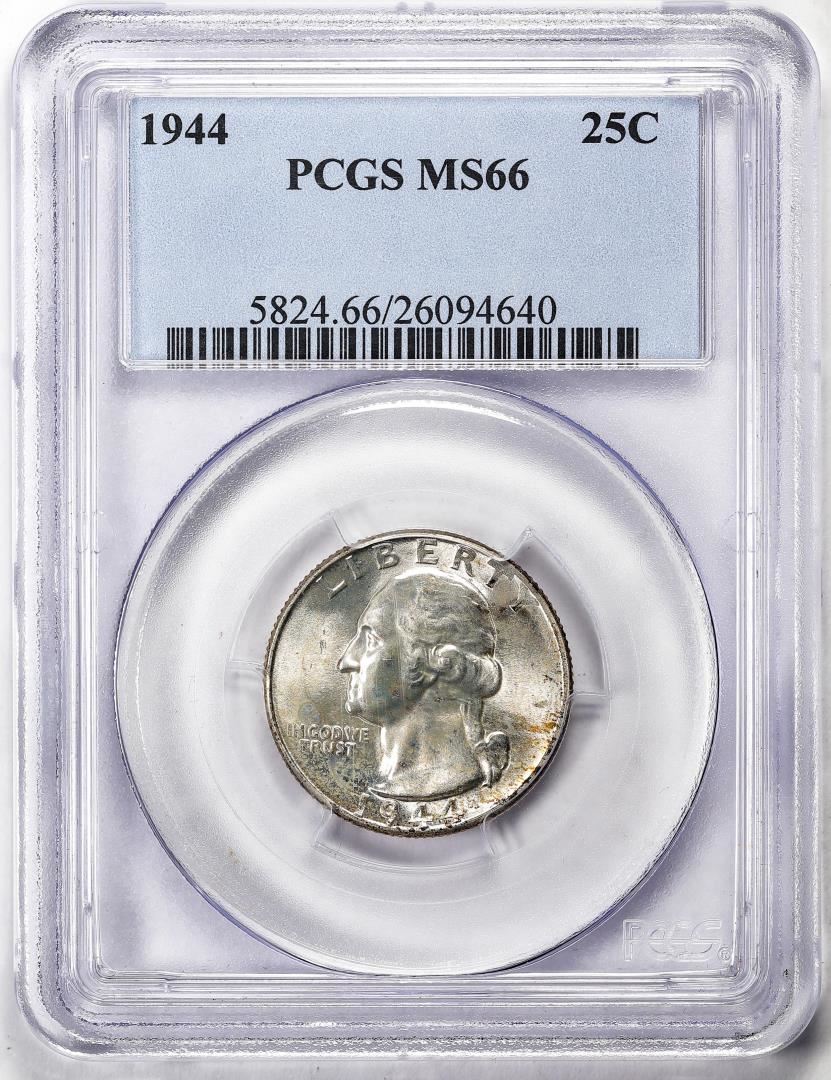One 1944 Washington Quarter Coin PCGS MS66. PCGS Graded.