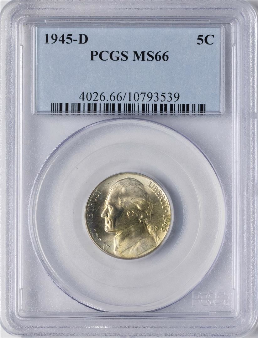 One 1945-D Jefferson Nickel Coin PCGS MS66. PCGS Graded.