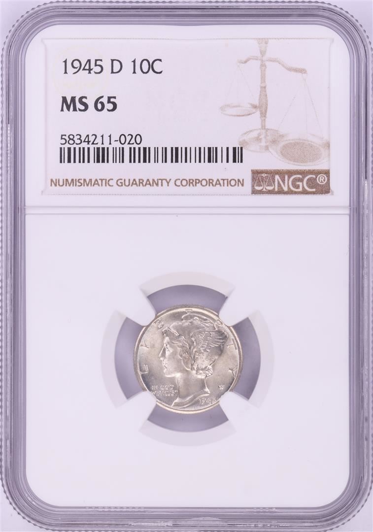 One 1945-D Mercury Dime Coin NGC MS65. NGC Certified.