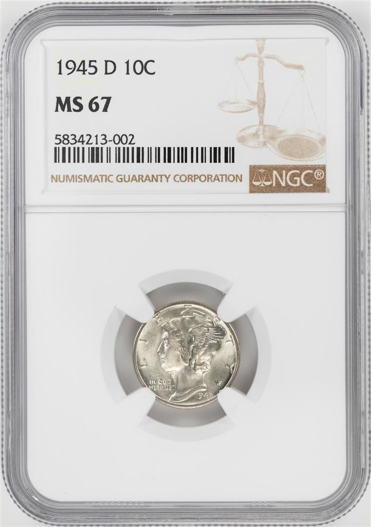 One 1945-D Mercury Dime Coin NGC MS67. NGC Certified.