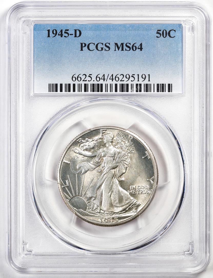 One 1945-D Walking Liberty Half Dollar Coin PCGS MS64. PCGS Graded.