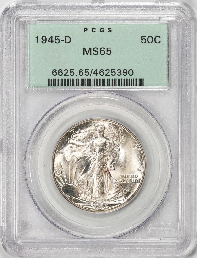 1945-D Walking Liberty Half Dollar Coin PCGS MS65 Old Green Holder