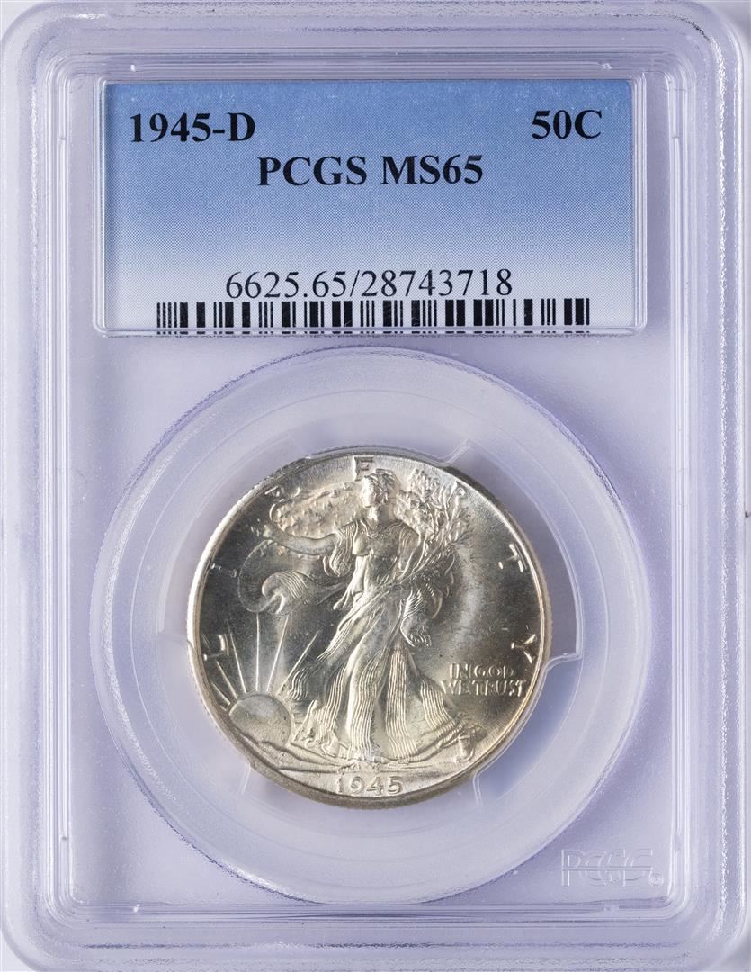 One 1945-D Walking Liberty Half Dollar Coin PCGS MS65. PCGS Graded.
