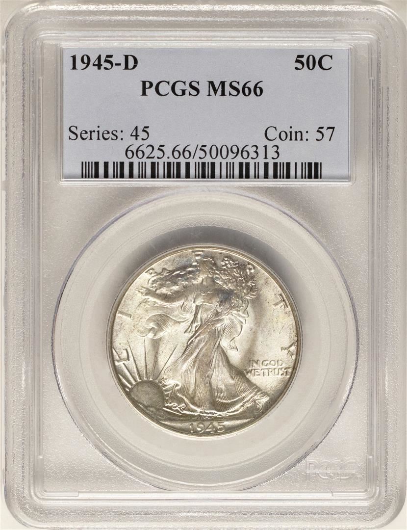One 1945-D Walking Liberty Half Dollar Coin PCGS MS66. PCGS Graded.
