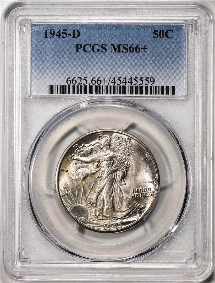 One 1945-D Walking Liberty Half Dollar Coin PCGS MS66+. PCGS Graded.
